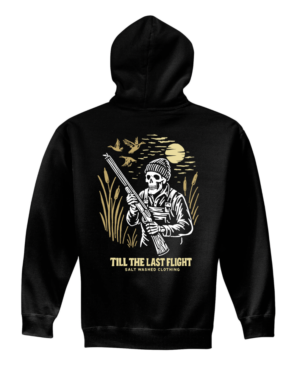 The Till the Last Flight hoodie pays tribute to the grit, patience, and tradition of waterfowl season. Featuring a bold back graphic set against a moonlit marsh, this design represents staying in the blind until the very last bird flies.